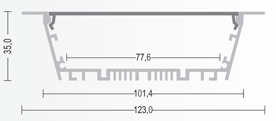 O tamanho grande Recessed-montou o perfil de alumínio anodizado de alta qualidade da tira lisa do diodo emissor de luz que é dedicado para a luz conduzida padrão da listra até a largura de 77.6m. O perfil está executando como o dissipador de calor à tira do diodo emissor de luz para a parede para o mainlight. Nós propomos a nossos clientes três difusores diferentes: opala, geada e clara. Nós igualmente oferecemos diversos acessórios diferentes tais como a tampa do PC, os grampos de mola, e os tampões de extremidade que a fazem olhar a aparência elegante.